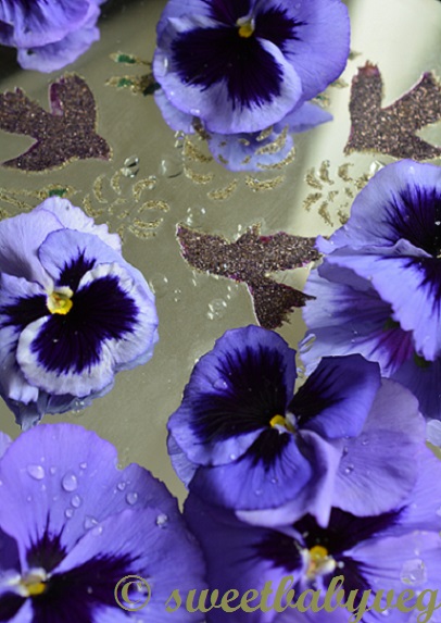 Pansies in shades of moody violet and mauve overhang the terracotta edging of my garden path as I stoop down to pick their gentle, floppy heads and place them in a container. I scatter water droplets on their friendly, fragrant faces, the way my mother taught me to do to keep flowers like violets fresh for longer.