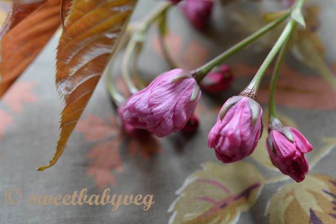 Fat, pink blossom buds hang heavy over my bowed head as I kneel on the ground to till a new little patch of earth. I smooth the soil with my hand and this simple action rolls back the years so that it is now my own, five year old hand that I can see patting down the seeds and soil in the infant school garden.