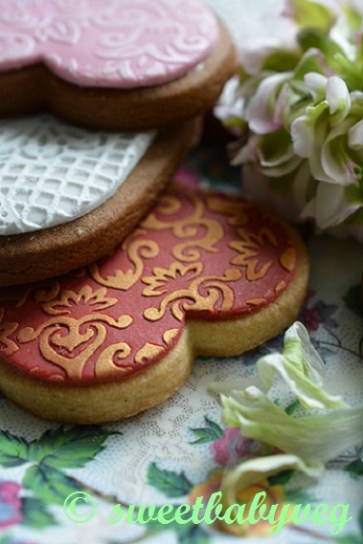 Hand baked, with love, these exquisite biscuits were made by Shilo as table favours  for a party to mark her recent marriage to David. Shilo and I had never met until I saw her biscuits; lovingly wrapped in cellophane, tied up with a ribbon and placed on the table just before everyone sat down to dine. Big bubbles of happiness popped inside me at the sight of these exquisite baked confections. These were made just for me! I rushed straight over to meet the special person who had made me feel so happy.