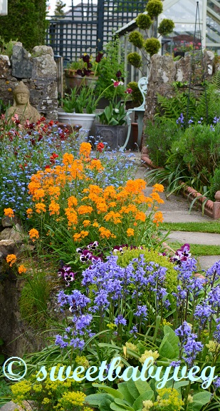 Published May 21, 2014 at 309 × 576 in Cottage Garden Sweet Rocket & Daisies… Gillyflowers and Forget-me-nots and Cloud pruning tree in the background