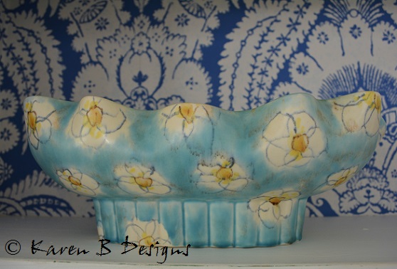 Published February 25, 2015 at 558 × 378 in Decorating with Shoe-String Style…. This has a modern look about it with its hand painted flowers, but it is from the 1940’s.
