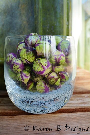 Sweet, edible buds, tinted purple and green, make these bébé choux de Bruxelles as pretty as a vase of flowers and a delight to eat.