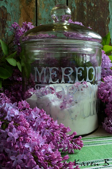 Published May 12, 2015 at 360 × 541 in Lilac Sugar…….. This jar is one of my most treasured items. It is an old Meredith and Drew biscuit jar.